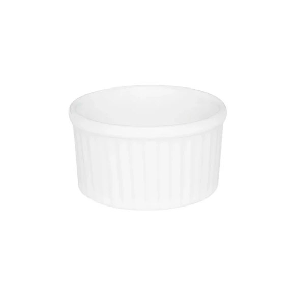 Amplamente utilizado na culinária ao redor do mundo, o ramequin é uma pequena tigela de porcelana em formato circular e com a parte de fora estriada. É muito usado para servir suflês e o famoso Crème Brûlée, mas pode ser empregado em diversas outras receitas, conforme a sua imaginação pedir. -Resistente a micro-ondas. -Resistente a lava-louças. Especificações Complementares: Referência: CB34-9001 Linha: Cookware Modelo: Ramequin Tamanho: 8x4cm Capacidade: 100ml Material: Refratária Código de Barras: 7891361827695 Garantia: 60 meses para gretagem Cor: Branco