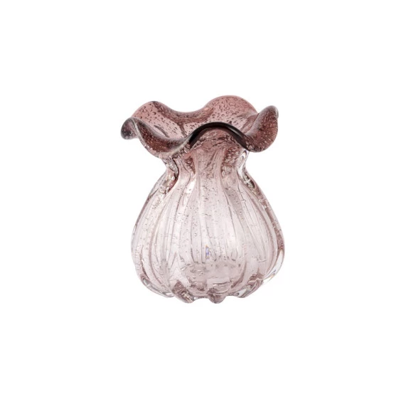 Torne o ambiente moderno e aconchegante com o sofisticado vaso de vidro trouxinha tipo murano ametista veneza 14X14X16. Sofisticado e resistente o centro de mesa veneza da mek é feito em vidro com design moderno, tornando sua mesa muito mais bela.